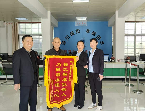 4月14日上午,槐蔭小區(qū)的余先生將一面繡有“排憂解難似親人 為民服務(wù)暖人心”的錦旗贈(zèng)予自來水公司,并對(duì)自來水公司員工的辛勤工作表示了衷心的感謝。