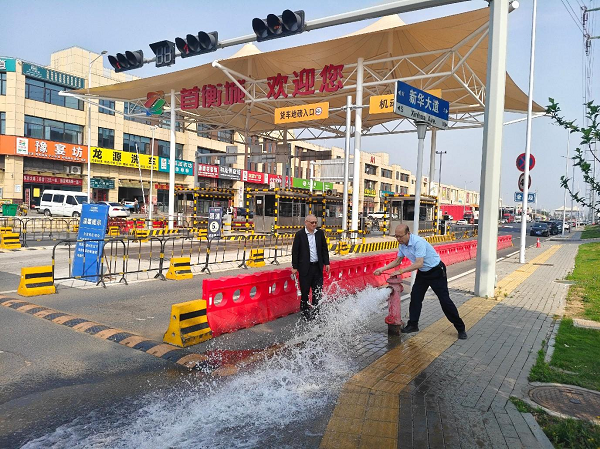 在首衡城農(nóng)產(chǎn)品交易中心,工作人員對市場入口和市場內(nèi)各貿(mào)易場所的消防設(shè)施進(jìn)行了檢查,逐一開閘試水,確保水源通暢,檢查栓體各配件是否完好,有無松脫,閘閥能否正常啟閉等。